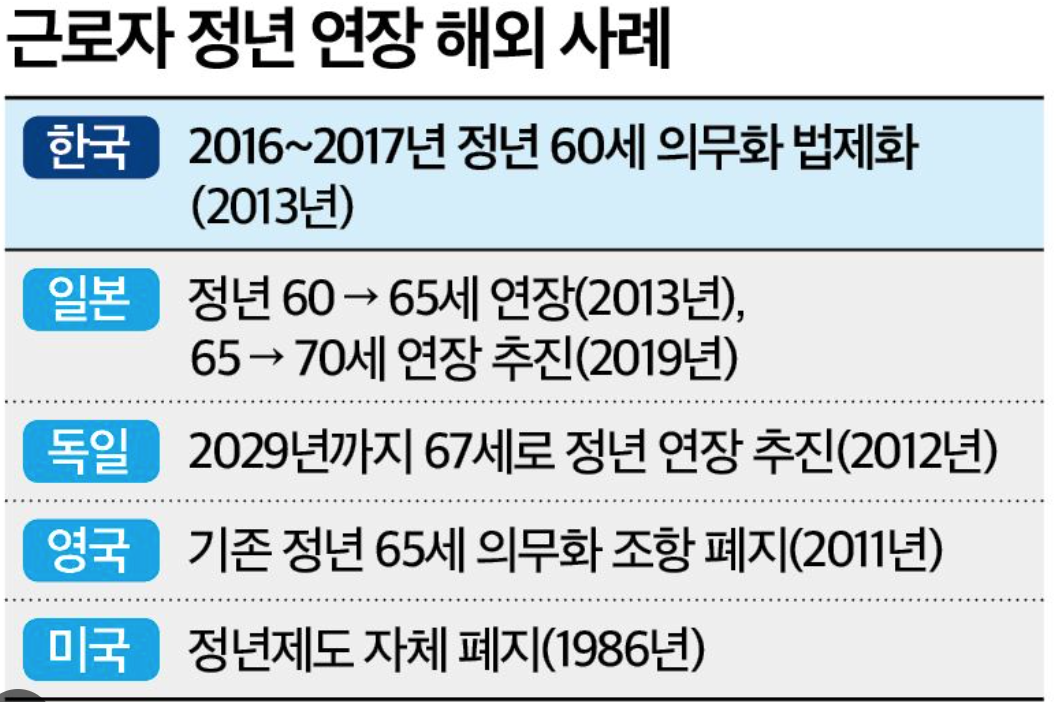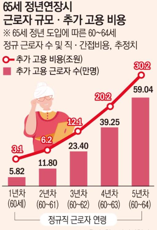 이후 점진적으로 정년을 65세까지 확대하는 방향이